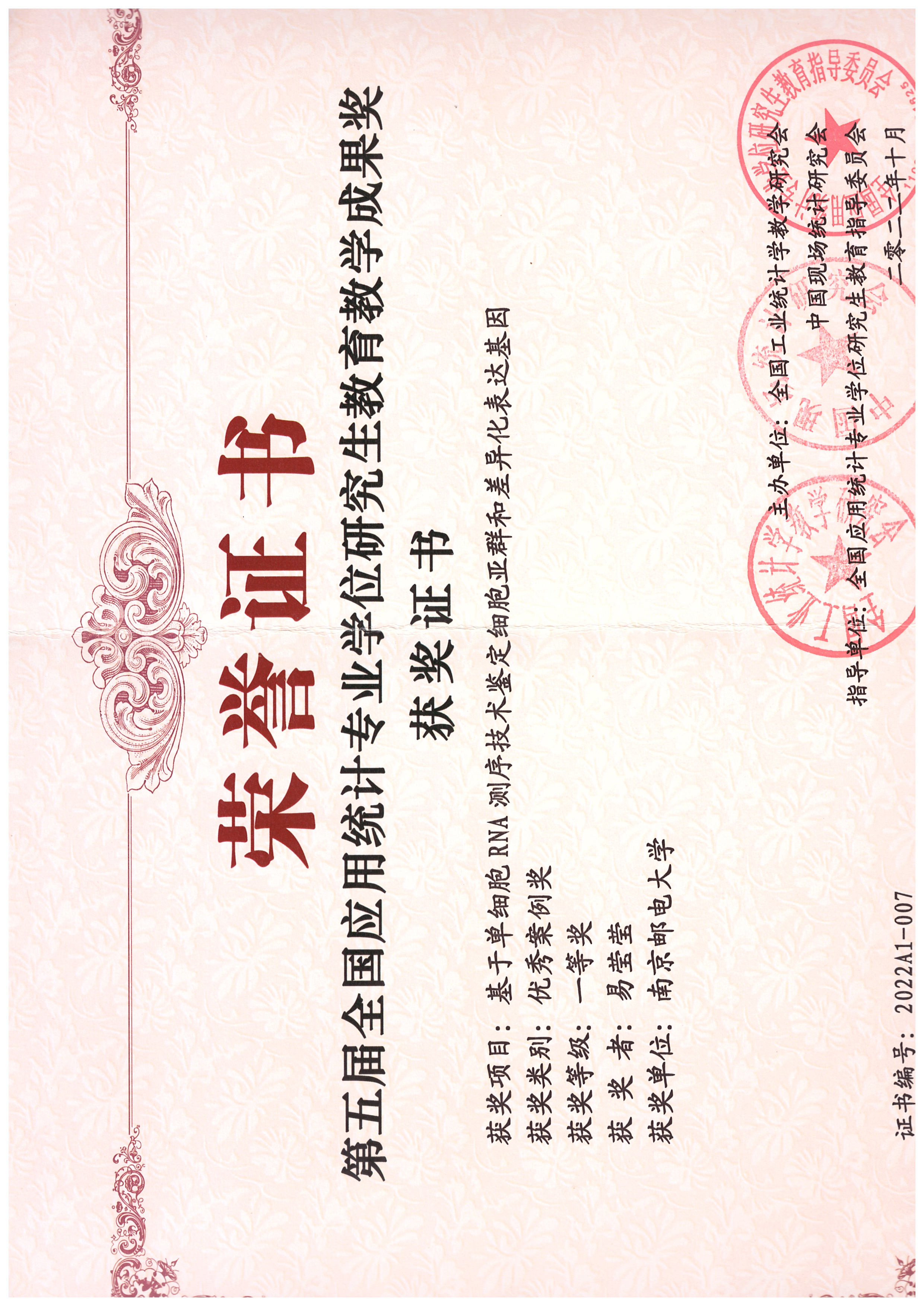 我院易瑩瑩老師獲第五屆全國(guó)應(yīng)用統(tǒng)計(jì)專業(yè)學(xué)位研究生教育教學(xué)成果優(yōu)秀案例獎(jiǎng)“一等獎(jiǎng)”